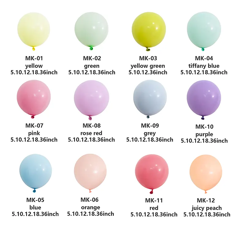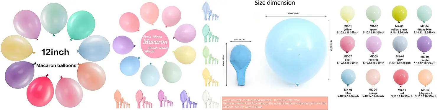 12 इंच मैकरॉन लेटेक्स गुब्बारे का विस्तृत डेटा