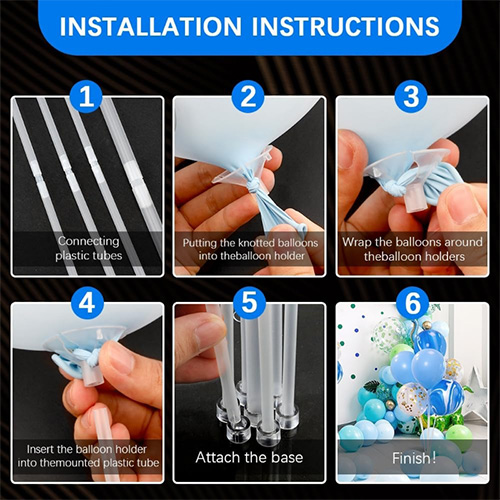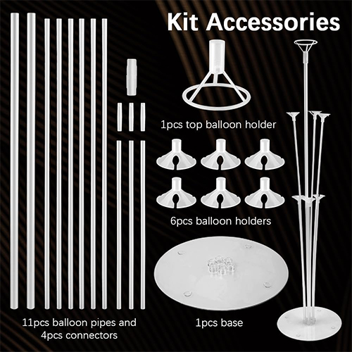 बैलून फ्लोर स्टैंड में एक आधार, कई कप, विभिन्न लंबाई के प्लास्टिक पाइप, जोड़ों और एक शीर्ष गैस क्लब शामिल हैं। विधानसभा के बाद, बैलून को डेस्कटॉप या ग्राउंड बैलून सजावट मॉडल बनाने के लिए तय किया जा सकता है, जो पार्टी, शादी, उत्सव और अन्य दृश्य लेआउट के लिए उपयुक्त है। तीन आयामी और सुंदर गुब्बारा सूट बनाने के लिए बैलून स्टैंड सुविधाजनक है।