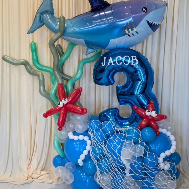 2। पन्नी गुब्बारा:शार्क पन्नी गुब्बारे के साथ गुब्बारा गारलैंड, यह पैकेज पन्नी गुब्बारे से सुसज्जित है, जिसमें विभिन्न कार्टून समुद्री जीवों, जैसे शार्क, स्टारफिश, जेलिफ़िश और सीहॉर्स के साथ विभिन्न कार्टून समुद्री जीवों के साथ सुसज्जित है। इसके अलावा, हम शार्क पन्नी गुब्बारे के साथ एक अद्वितीय गुब्बारा माला बनाने के लिए आपके पैटर्न के अनुसार आपके लिए कस्टम पन्नी गुब्बारे भी डिजाइन कर सकते हैं।