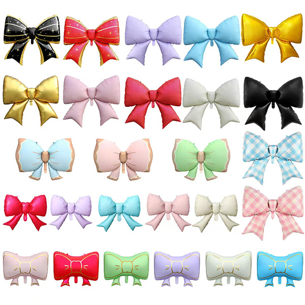 ये धनुष पन्नी गुब्बारे क्लासिक बो-टाई लुक को बदलते हैं। कुछ में एक वक्र या विभाजन के साथ रिबन छोर होता है। कुछ एक खोखले डिजाइन दिखाते हैं। शैली ताजा और विशेष लगती है। वे एक कला जैसी भावना लाते हैं। वे किसी भी पार्टी सेटअप में हाइलाइट बन जाते हैं।