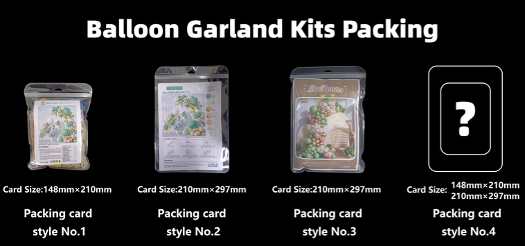 1. पैकिंग: हम आपके लिए धनुष-थीम वाले बैलून आर्क पैकिंग बैग या बैग पर प्रिंटिंग को कस्टम कर सकते हैं, लेकिन इसमें MOQ मात्रा की आवश्यकताएं हैं।