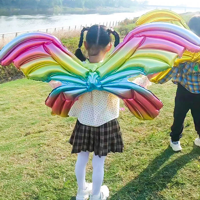 इस शैली का उपयोग अक्सर इंटरैक्टिव आउटडोर सेटिंग्स में किया जाता है। फ़ॉइल बैलून में पीछे की ओर एक समायोज्य कंधे का पट्टा या कंधे का पट्टा होता है। बच्चे और वयस्क इसे सीधे अपनी पीठ पर पहन सकते हैं, जिससे यह पहनने में हल्का और आरामदायक हो जाता है। आरामदायक फिट सुनिश्चित करने के लिए इन्फ्लेशन पोर्ट को कंधे के स्ट्रैप के बगल में छुपाया गया है। यह बाहरी सेटिंग और स्टालों के लिए उपयुक्त है, और एलईडी लाइटें रात के माहौल का स्पर्श जोड़ सकती हैं।