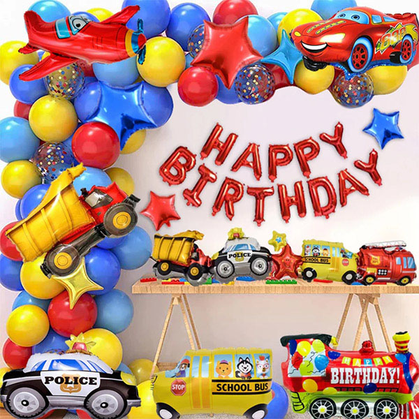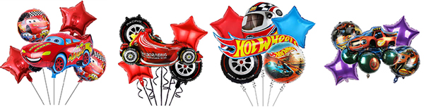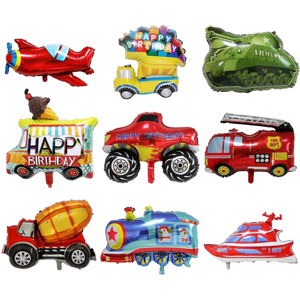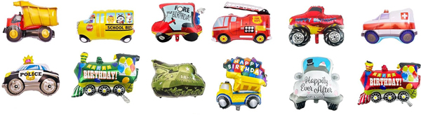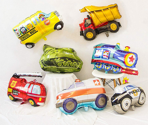 कार्टून वाहन फ़ॉइल गुब्बारों का निःशुल्क नमूना।
