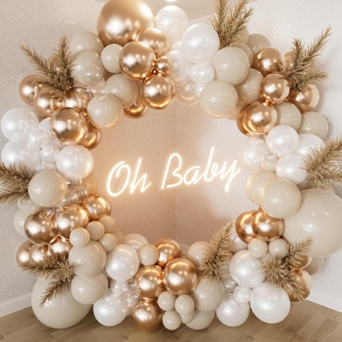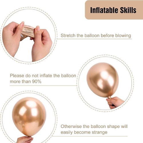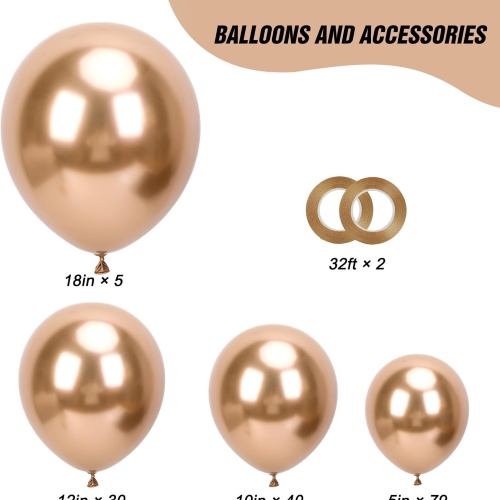 शैम्पेन बैलून आर्क में एक भव्य और पूर्ण दिखने वाली व्यवस्था बनाने के लिए पर्याप्त मात्रा में कम से कम 100-150 उच्च गुणवत्ता वाले गुब्बारे शामिल हैं। एक बार इकट्ठे होने पर, यह एक सुंदर और वायुमंडलीय पार्टी सेटिंग बनाता है। आप नीचे फोटो से देख सकते हैं.