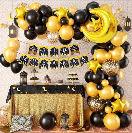 नियुन® ब्रांड ईद अल-फितर बैलून माला किट में आमतौर पर विभिन्न प्रकार के आइटम होते हैं, जैसे कि ईद-थीम वाले लेटेक्स गुब्बारे और विभिन्न आकारों और रंगों के फ़ॉइल गुब्बारे, पृष्ठभूमि, मेज़पोश, मछली पकड़ने की रेखाएं, गुब्बारे की चेन, गोंद के धब्बे, मैनुअल या इलेक्ट्रिक एयर पंप, आदि। ईद अल-फितर गुब्बारे की माला का अनुकूलन ग्राहकों की प्राथमिकताओं और उपभोक्ताओं की विभिन्न आवश्यकताओं को पूरा करने के लिए ईद अल-फितर की सजावट की जरूरतों के अनुसार हो सकता है।