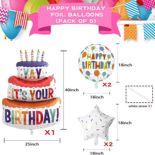 फ़ॉइल गुब्बारे: केक फ़ॉइल गुब्बारा, गोल जन्मदिन का गुब्बारा, स्टार फ़ॉइल गुब्बारा;