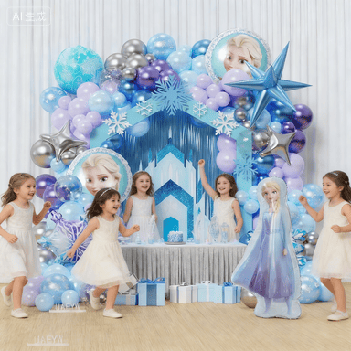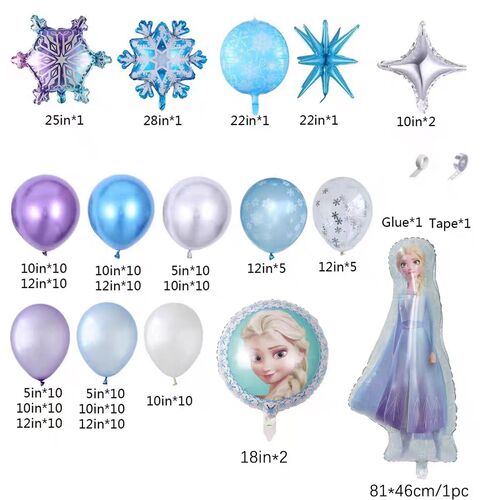 डिज़्नी शैली के उत्पाद के रूप में जमे हुए थीम वाले बैलून आर्च सेट को दुनिया भर में बच्चों और वयस्कों द्वारा पसंद किया गया है।