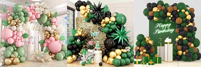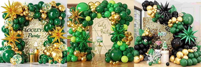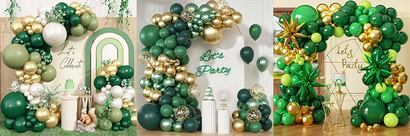 हरा और सुनहरा गुब्बारा मेहराब अपने मुख्य विचार के रूप में प्राकृतिक और लक्जरी रंगों का उपयोग करता है। हरे और सुनहरे रंग का मिश्रण एक ताज़ा और खूबसूरत पार्टी लुक देता है। आर्च में कई हरे शेड हैं जैसे मैट डार्क ग्रीन, रेट्रो बीन ग्रीन, रेट्रो एवोकैडो ग्रीन, रेट्रो डार्क ग्रीन इत्यादि। प्रत्येक रंग अपनी परत और बनावट दिखाता है।सोने के गुब्बारेसाग के साथ अच्छी तरह मेल खाता है। हरे रंग एक शांत और प्राकृतिक एहसास लाते हैं। सोने वाले चमक और विलासिता का स्पर्श जोड़ते हैं। दोनों रंग एक दूसरे के पूरक हैं। वे ऐसा वातावरण बनाते हैं जो परिष्कृत और सुरुचिपूर्ण हो।
