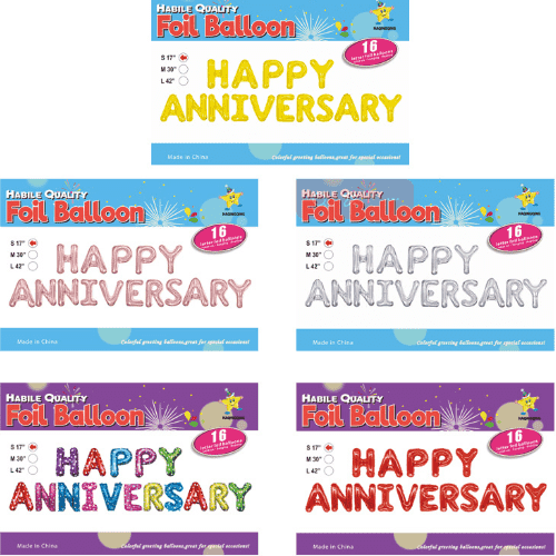 हैप्पी एनिवर्सरी फ़ॉइल बैलून के लिए सजावट के लिए 16 इंच, मुख्य पृष्ठभूमि के लिए 32 इंच और बड़ी पार्टियों के लिए 40 इंच।
