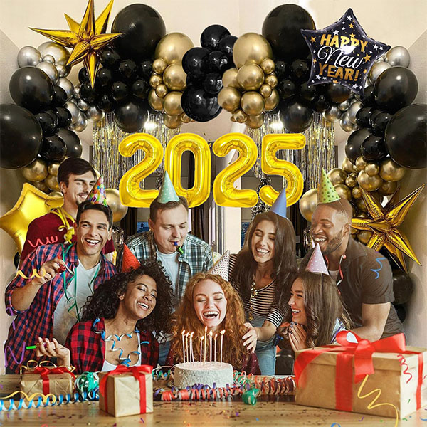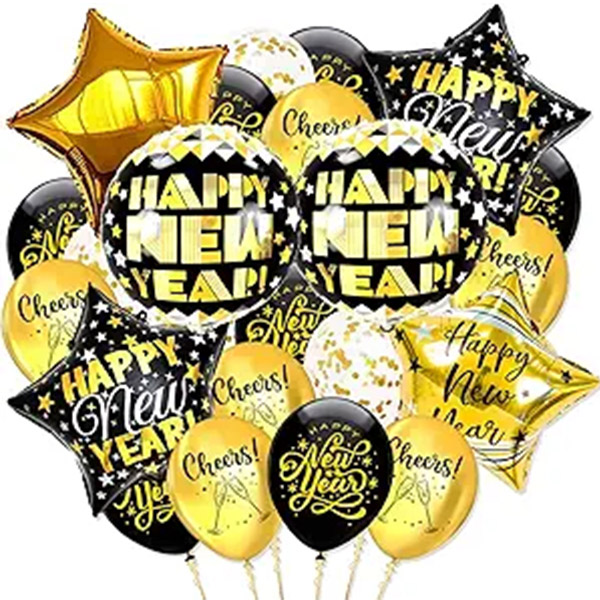 नए साल की थीम वाले गुब्बारे छुट्टियों की सजावट का एक अनिवार्य हिस्सा हैं। काले और सुनहरे रंग के ये जीवंत गुब्बारे, नए साल के माहौल में खुशी और शैली लाते हुए, एक अनोखा उत्सव स्पर्श बनाते हैं। उनकी टिकाऊ बनावट अपस्फीति का प्रतिरोध करती है, जिससे वे लंबे समय तक भरे रहते हैं। इन्हें फुलाया जा सकता हैहीलियम या वायु, पूर्ण, त्रि-आयामी उपस्थिति बनाए रखता है। वे इनडोर और आउटडोर दोनों सजावट के लिए बिल्कुल उपयुक्त हैं।