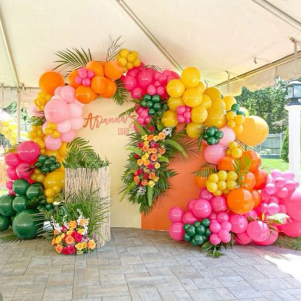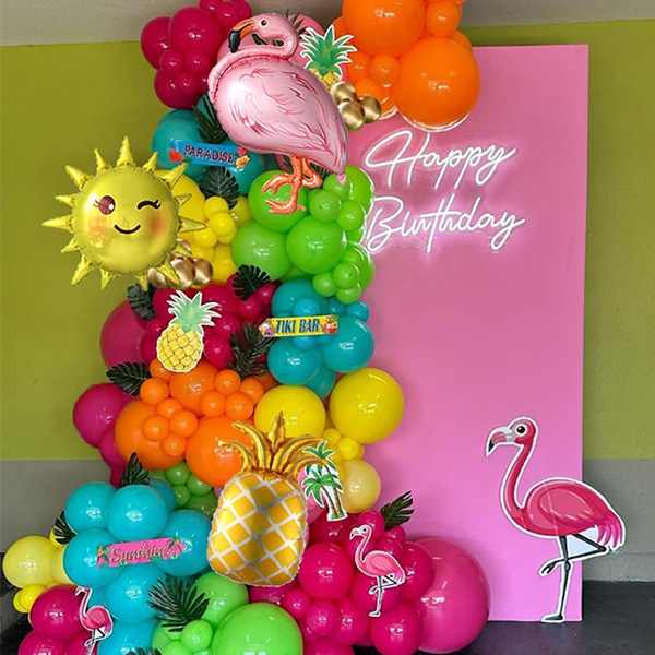 हम आपका अपना अनूठा रंग पैलेट चुनकर, इसे आपकी अपनी थीम के अनुसार अनुकूलित कर सकते हैं। उदाहरण के लिए, कुछ रेट्रो-थीम वाले गुब्बारे जोड़ने से आपके स्थल के लिए एक उष्णकटिबंधीय और उत्सवपूर्ण माहौल तैयार हो जाएगा, जो आपके हवाईयन बैलून गारलैंड किट में ग्लैमर का स्पर्श जोड़ देगा।