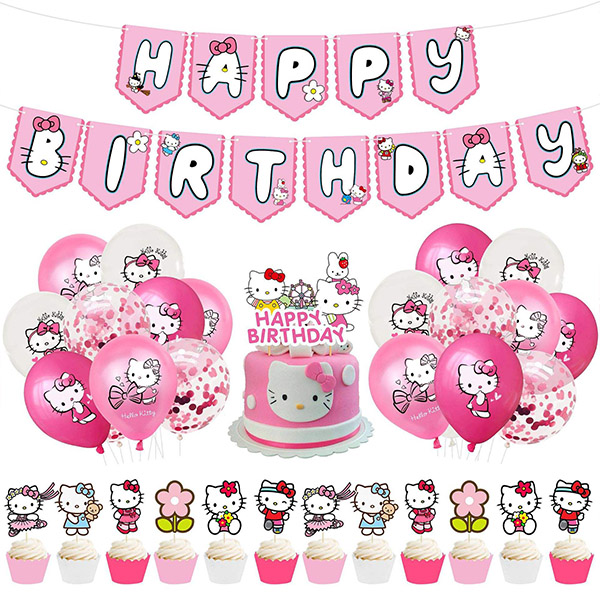 2) पेपर बैनर: "हैप्पी बर्थडे" लिखे हुए हैलो किट्टी बैनर कार्टून गुलाबी कार्डों पर चिपकाने के लिए बिल्कुल उपयुक्त हैं। कार्डस्टॉक बहुत मोटा और मजबूत है। वे आपके कार्यक्रम में एक आनंदमय माहौल जोड़ते हैं, यह सुनिश्चित करते हैं कि यह लंबे समय तक चले। सावधानी से तैयार किए गए, वे जुनून जगाते हैं।बहुत सुन्दरसहित गुब्बारों की एक विस्तृत श्रृंखला प्रदान करता हैविभिन्न आकारों और रंगों में कस्टम मुद्रित हैलो किट्टी गुब्बारे (लेटेक्स और बोबो गुब्बारे), साथ ही कार्टून चरित्र पर आधारित बड़े पैमाने पर उत्पादित हैलो किट्टी फ़ॉइल गुब्बारे। हम आपकी विशिष्ट पार्टी सजावट आवश्यकताओं को पूरा करने के लिए हैलो किट्टी पार्टी बैलून गारलैंड बनाने के लिए विभिन्न लेटेक्स गुब्बारे, कस्टम-प्रिंटेड हैलो किट्टी गुब्बारे और फ़ॉइल गुब्बारे को मिलाकर हैलो किट्टी पार्टी बैलून गारलैंड्स को भी अनुकूलित कर सकते हैं।