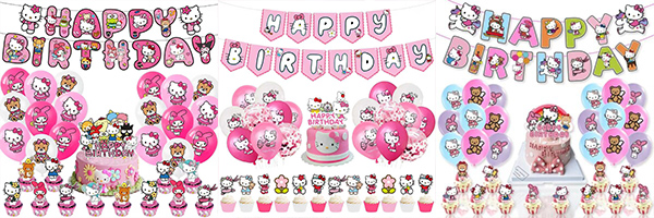 1) पृष्ठभूमि: हैलो किट्टी पृष्ठभूमि, मुख्य रूप से गर्म स्वर में, किसी भी जन्मदिन की पार्टी में सनक का स्पर्श जोड़ती है। वे फोटो पृष्ठभूमि, टेबल सजावट या मंच सजावट के रूप में भी उपयुक्त हैं।