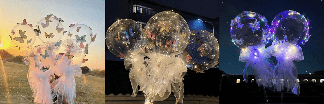 बोबो गुब्बारा स्वयं पारदर्शी और सरल है, जो खोखले तितली स्टिकर के प्रकाश-संचारण लचीलेपन के साथ अत्यधिक सुसंगत है। स्टिकर का मुख्य उपयोग नीरस गुब्बारे को तितली नृत्य सस्पेंशन बॉल में अपग्रेड करना है, और गुब्बारे को तितली के त्रि-आयामी आकार और प्रकाश और छाया प्रभाव के माध्यम से दृश्य का फोकस बनाना है। बच्चों के जन्मदिन की पार्टी, वयस्कों के जन्मदिन की पार्टी, शादी के स्वागत क्षेत्र, शॉपिंग मॉल की गतिविधियाँ, अवकाश गृह की सजावट बहुत उपयुक्त हैं। रात में, इसे एलईडी लाइट्स के साथ भी मैच किया जा सकता है, जो बहुत ही आकर्षक है।