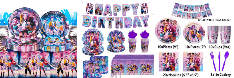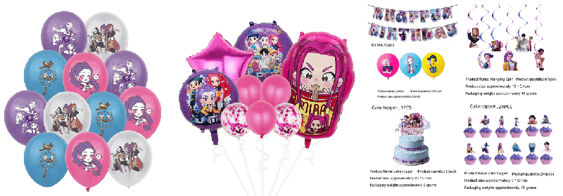 1. प्रश्न: के-पॉप डेमन हंटर्स पार्टी डेकोरेशन सेट में मुख्य रूप से किस प्रकार के उत्पाद शामिल हैं?
