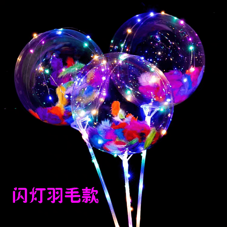 पंख, पंखुड़ियों और अन्य सजावट के साथ एलईडी हैंडल बोबो बैलून