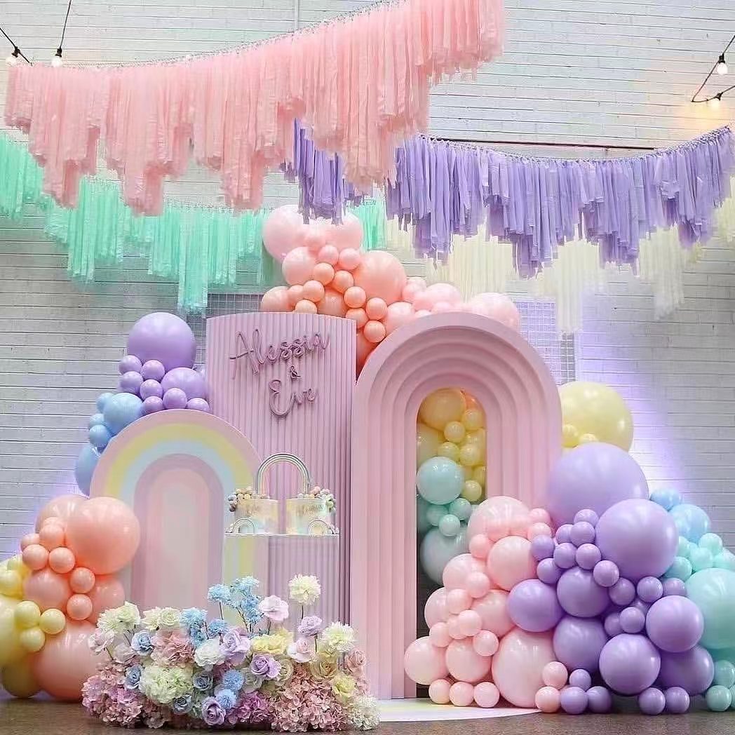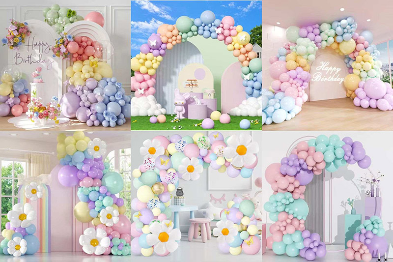 पार्टी मैकरून गुब्बारे माला आर्क बहुत लचीला है। विभिन्न संयोजन कई सजावट शैलियाँ दिखा सकते हैं।