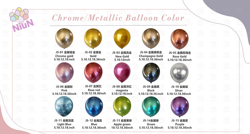 रंग: धातु के गुब्बारों में 15 रंग होते हैं। आप अंतहीन दृश्य प्रभावों के लिए उन्हें स्वतंत्र रूप से मिला सकते हैं।