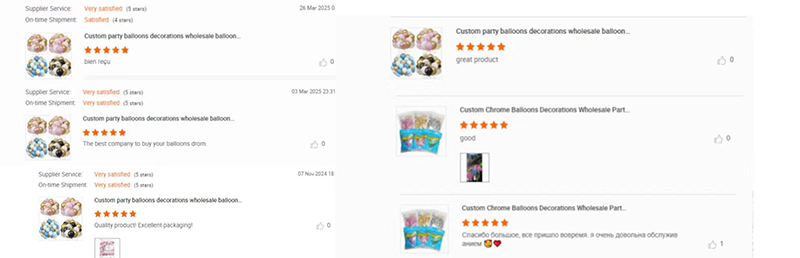 12 इंच धातु रंग के गुब्बारे छोटे सेट दो विकल्पों में आते हैं। आप 12-पीस कॉम्पैक्ट पैक या 30-पीस बड़ा पैक चुन सकते हैं। 12-पीस पैक छोटी पार्टियों के लिए बहुत अच्छा काम करता है। यह टेबल की सजावट और उपहार जोड़ी में भी फिट बैठता है। यह अच्छा मूल्य और व्यावहारिक उपयोग दोनों प्रदान करता है। 30-पीस पैक बड़ी जरूरतों को पूरा करता है। यह दीवार की सजावट और गुब्बारा मेहराब निर्माण के लिए आदर्श है। आप अपने वास्तविक खरीदारी परिदृश्य के आधार पर सही विकल्प चुन सकते हैं। हमारे पास 10 वर्षों से अधिक का बिक्री अनुभव है। 12-पीस पैक में अधिक लागू परिदृश्य हैं। यह ग्राहकों के बीच अधिक लोकप्रिय है.