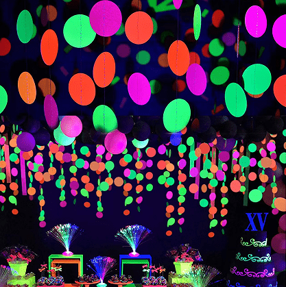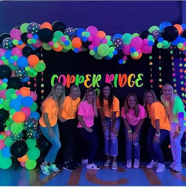 नियॉन बैलून आर्च बैंगनी/काली रोशनी के नीचे एक मजबूत नियॉन चमक दिखाएगा।