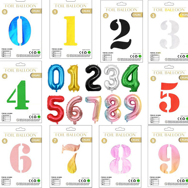 संख्या पन्नी गुब्बारे: 16 ", 32", और 40 "के आकार में उपलब्ध है।