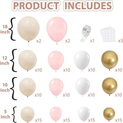 गुलाबी बेज सफेद गुब्बारा आर्च किट |