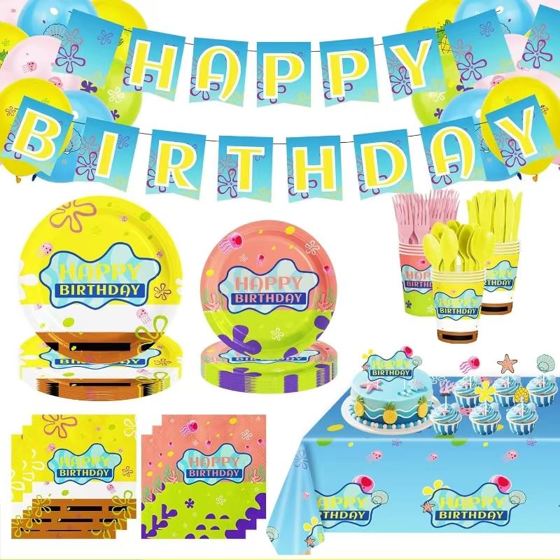 बच्चों की पार्टी की वस्तुओं में, स्पंजबॉब टेबलवेयर सेट एक मज़ेदार और उपयोगी विकल्प है। इसमें मुख्य डिज़ाइन के रूप में स्पंजबॉब और पैट्रिक जैसे प्रसिद्ध पात्र हैं। सेट प्लेट, पेपर कप, नैपकिन और बर्तन के साथ आता है। प्लेटों में स्पंज बॉब को बड़ी मुस्कान के साथ और पैट्रिक को मजाकिया चेहरे के साथ दिखाया गया है। समुद्री शैली लाने के लिए डिज़ाइन में जेलीफ़िश, समुद्री शैवाल और सीपियाँ जोड़ी गई हैं। रंग चमकीले और परतों में समृद्ध हैं। पेपर कप और नैपकिन एक ही थीम का अनुसरण करते हैं। पूरी टेबल समुद्री मस्ती से भरी हुई दिखती है। टेबलवेयर सुरक्षित और पर्यावरण अनुकूल सामग्री का उपयोग करता है। यह एक सुंदर स्टाइल रखता है और उपयोगी भी है। यह जन्मदिन पार्टियों, थीम आधारित कार्यक्रमों या पारिवारिक भोजन के लिए उपयुक्त है। यह सेट बच्चों के लिए एक सुखद "बिकनी बॉटम दावत" बनाता है और माता-पिता को एक आसान और उच्च गुणवत्ता वाला पार्टी विकल्प देता है।