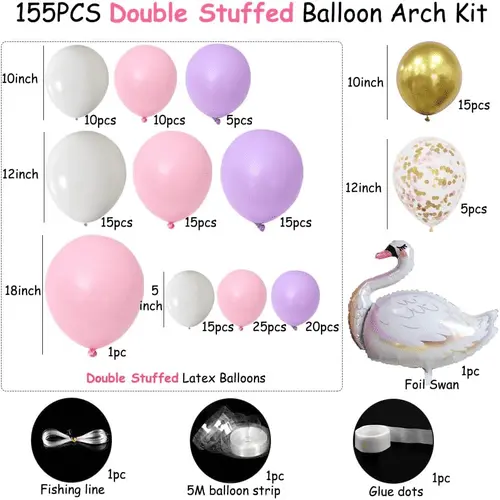हम स्वान बैलून आर्च के लिए अलग-अलग सहायक उपकरण जोड़ेंगे। जिसमें डॉट गोंद, बैलून स्ट्रिप और रिबन शामिल हैं। इसके अलावा, हम आपके अनुरोध के अनुसार अन्य सहायक उपकरण भी जोड़ सकते हैं।