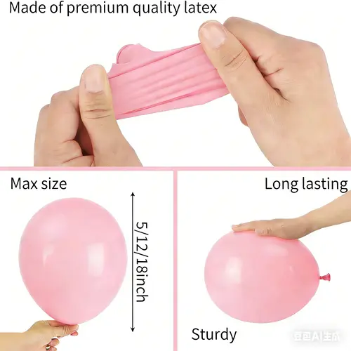 हमारे द्वारा उपयोग किए जाने वाले कच्चे माल और सुरक्षित मुद्रण सामग्री के कारण, गुब्बारे पूरी तरह से पर्यावरण के अनुकूल हैं और बच्चों और वयस्कों के लिए हानिरहित हैं। इनका रंग अधिकतर हल्के रंग का होता है, जैसे गुलाबी, बैंगनी, सफेद, पारदर्शी। धातु के सोने के गुब्बारे भी जोड़े गए हैं और वे मेहराब को और अधिक आकर्षक बनाते हैं।