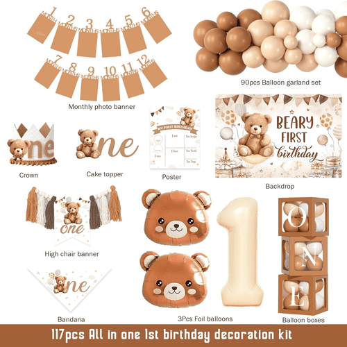 टेडी बियर बैलून आर्च में लेटेक्स बैलून 100% कच्चे लेटेक्स से बना है जो दक्षिण पूर्व एशिया से आयात किया जाता है। वे पूरी तरह से प्राकृतिक सामग्री हैं इसलिए वे पर्यावरण के अनुकूल हैं और बच्चों और वयस्कों के लिए हानिकारक नहीं हैं। इनका आकार 5 इंच, 10 इंच और 18 इंच है और रंग भूरा, रेतीला सफेद और बेज है। विभिन्न रंग और आकार अलग-अलग परतें बनाते हैं जो इस किट को लोगों के लिए बहुत आकर्षक बनाते हैं।