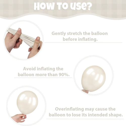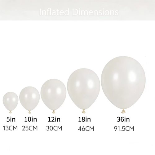 सफेद मोती रंग के गुब्बारे को अलग-अलग सेट बनाने के लिए जोड़ा जा सकता है, जैसे छोटे सेट और गुब्बारे माला आर्क किट।